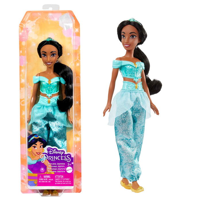 Descubre esta muñeca de la princesa Jasmine, inspirada en la generosa e intrépida heroína de la película de Disney, Aladdín. Esta muñeca de moda articulada lleva un conjunto de ropa brillante y accesorios, entre los que se incluyen zapatos y una tiara. Con su conjunto emblemático inspirado en la película, esta muñeca de Jasmine está lista para cualquier aventura. La muñeca no puede tenerse en pie por sí sola. Los colores y la decoración pueden variar.