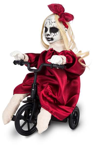 Muñeca Poseída En Triciclo Con Sonido y Movimiento 37x15x22 Cm