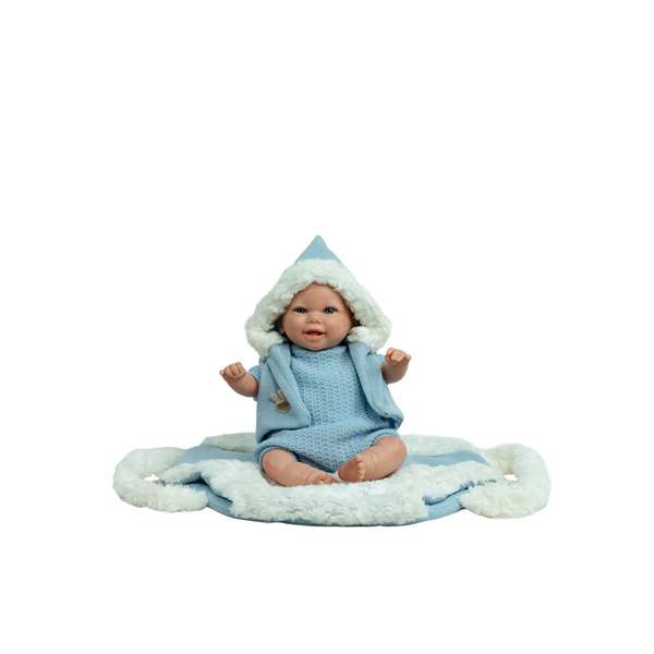Muñeca Reborn Arias 35 Cm Marco Azul C/Saco Portabebe