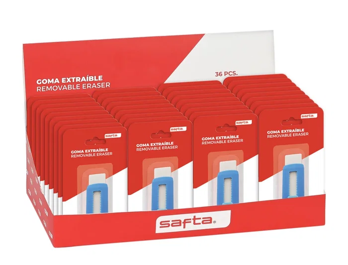 El expositor de 36 piezas de goma extraíble Safta está diseñado especialmente para uso escolar, ofreciendo una solución práctica y funcional para la organización y distribución de productos en entornos educativos. Este conjunto, pensado para niños a partir de 3 años, destaca por su tamaño compacto de 13 x 21 x 10 cm, que facilita su manejo y almacenamiento sin sacrificar la capacidad de contener un volumen considerable de piezas. Fabricado con materiales de origen china y manufacturado bajo los estándares vinculados a Suiza, este producto garantiza calidad y seguridad adecuadas para el uso infantil. Su diseño tipo escolar es idóneo para fomentar hábitos ordenados y facilitar el acceso a los elementos de forma rápida y eficiente, siendo una opción frecuente en aulas o espacios dedicados al aprendizaje. La goma extraíble que conforma cada pieza asegura un uso cómodo y duradero, permitiendo reemplazos sencillos en caso de desgaste. Además, la presentación en expositor aporta un valor añadido para comercios o centros educativos que precisen un almacenamiento compacto y visualmente accesible para pequeños utensilios o materiales escolares. En definitiva, este expositor Safta combina funcionalidad, dimensiones adecuadas y una propuesta segura para los más pequeños en entornos académicos.