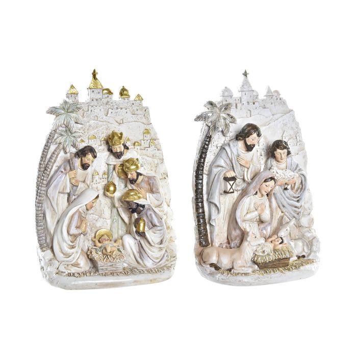 DKD Home Decor Nacimiento Navidad Tradicional Crema Dorado 9 x 25.5 x 18 cm (2 Unidades) Resina