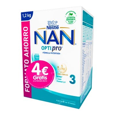 NAN Optipro 3 Bib 12 Envases 600 G Pack Fórmula de Leche para Niños