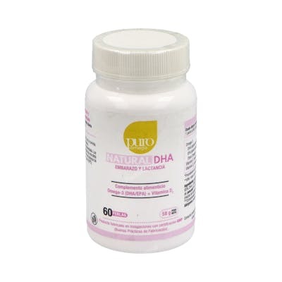 PURO OMEGA Natural DHA Embarazo Y Lactancia 60 Perlas para el desarrollo normal del cerebro y los ojos del feto y lactantes