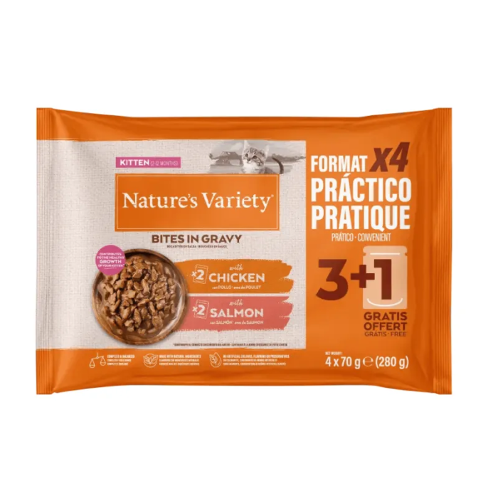 Nature's Variety Cat Wet Bites Flow Pack Pollo y Salmón