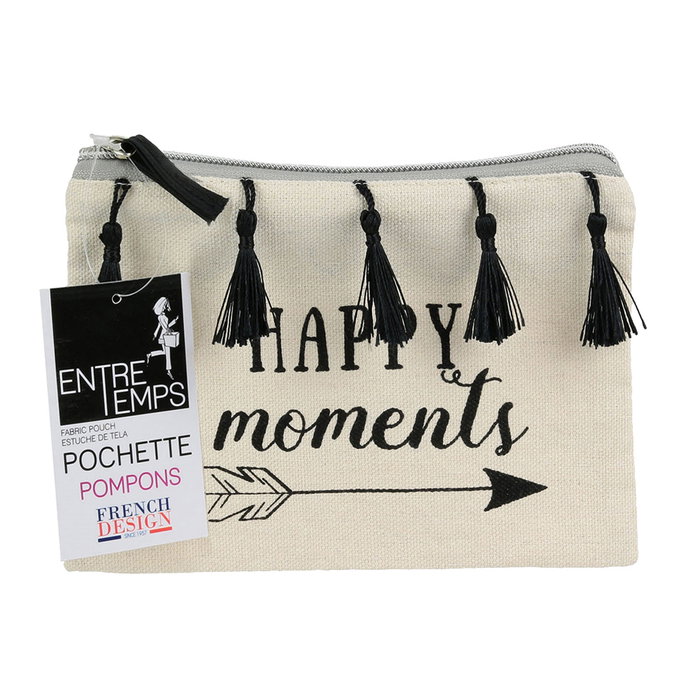 Entre Temps Neceser Algodón Con Flecos Happy, Suivez, Home, Bazar 19x1x14 cm