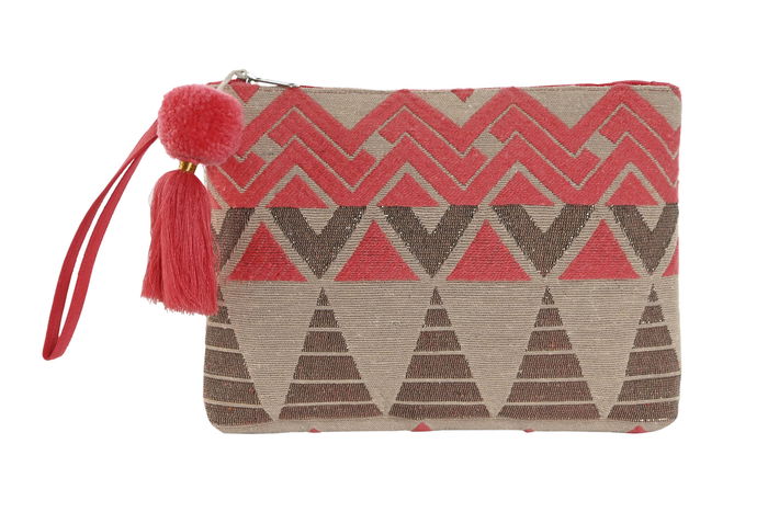 DKD Home Decor Neceser Mediterraneo Algodon Fucsia Beige 2 x 19 x 26 cm