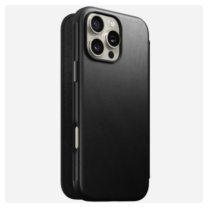 Nomad Folio Modern Leather para iPhone 16 Pro Max - Funda con MagSafe, cierre magnético y 3 bolsillos para tarjetas, Negro