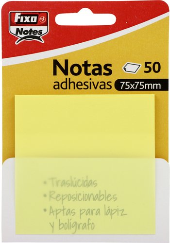 Notas Adhesivas Fixo Notes Traslucidas 50H 75X75 Amarillo Pastel (Set de 24)