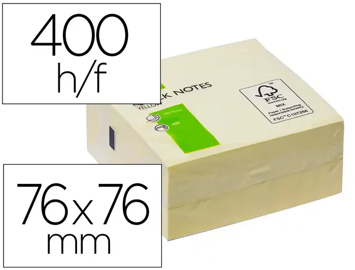 Recomendables para escribir datos. Color amarillo. Medidas: 76 x 76 mm. El cubo de 400 hojas.