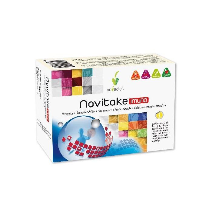 NOVADIET Novitake Inmuno 20 Ampollas - Suplemento Sistema Inmune con Hongos (Reishi, Shiitake, Maitake, Cordyceps) y Vitaminas C, B6, B12, Ácido Fólico