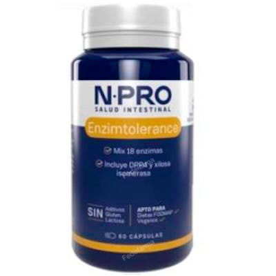 NPRO Enzim Tolerance 60Cap - Enzimas Digestivas para Intolerancias Alimenticias, Gluten, Caseína y Grasas. Apto Veganos. Complemento para Dieta Baja en FODMAP.