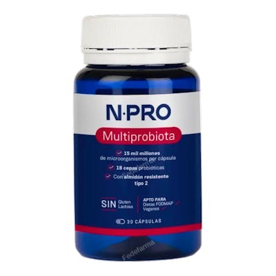 NPRO Multiprobiota 30 Cápsulas Probióticos 15.000 Millones UFC Ayuda Intestinal Inmunitaria
