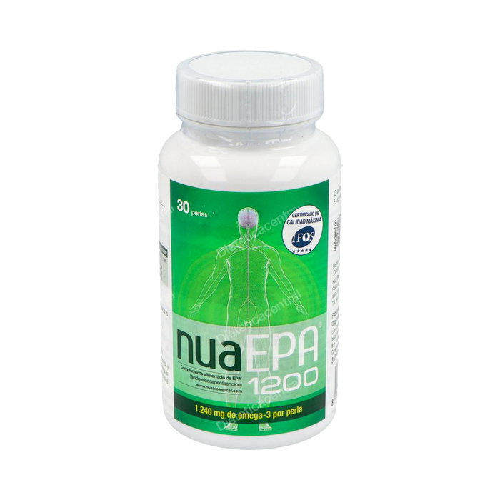 Indicaciones: Preparado alimenticio procedente del aceite de pescado que ofrece una de las fuentes más puras y concentradas de EPA (ácido eicosapentaenoico). SELLO IFOS. Nua EPA 1200 es un complemento alimenticio concentrado en ácidos grasos omega-3 de origen marino, específicamente en ácido eicosapentaenoico (EPA), obtenido a partir del pescado azul. Estas grasas omega-3, entre las que también se encuentra el ácido docosahexaenoico (DHA), pueden ayudar al normal funcionamiento del organismo, pero no son producidas por él, por lo que deben ser ingeridas a través de la dieta o de suplementos. La fórmula de Nua EPA se presenta en forma de triglicérido, lo que asegura una mejor absorción y asimilación de los ácidos grasos EPA y DHA. Además, está libre de contaminantes como metales pesados, dioxinas y mercurio, y no contiene gluten ni lactosa. Los beneficios de Nuaepa 1200 son múltiples, ya que el ácido eicosapentaenoico es conocido por sus propiedades antiinflamatorias y por dar apoyo al sistema cardiovascular. Además, su consumo ayuda a la normal función mental, de utilidad para la memoria y la concentración.