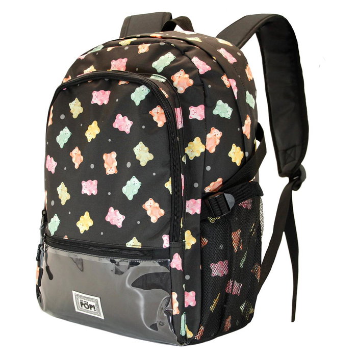 Mochila urbana ligera con un compartimento, un bolsillo frontal grande y otro transparente. Correas acolchadas ajustables, dos bolsillos laterales de malla y cinta trasera adaptable a trolley. Interior con bolsillo para dispositivos electrónicos.