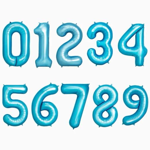 Globo en forma de número en color azul pastel. Diseño elegante para dar el toque de brillo a tus celebraciones. Con 100 cm de altura (40'). Puedes hincharlos con helio o tu mismo dado que se incluye una válvula y cañita de plástico estrecha para un hinchado fácil y cierre automático.