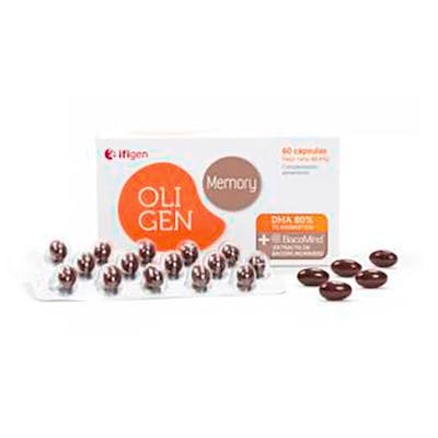 Oligen Memory 60 Cap. Complemento alimenticio para memoria y función cerebral con DHA, Hierro, Zinc y Brahmi