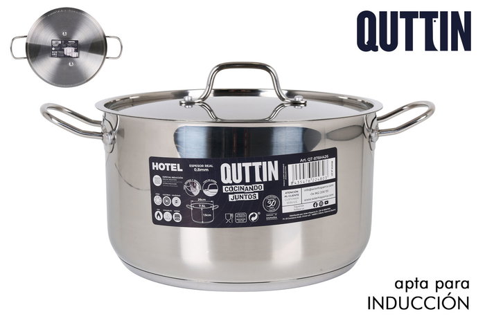Quttin Olla con Tapa de Acero Inoxidable 26 cm x 15 cm, 7.5 Litros, Grosor 0.8 mm (2 Unidades)