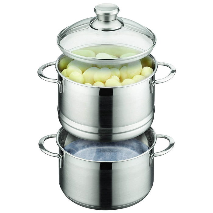 GSW Olla Vapor Inducción Diámetro 20 cm Acero Inoxidable Juego 4 Piezas Colección Mirage Apta Cocinas