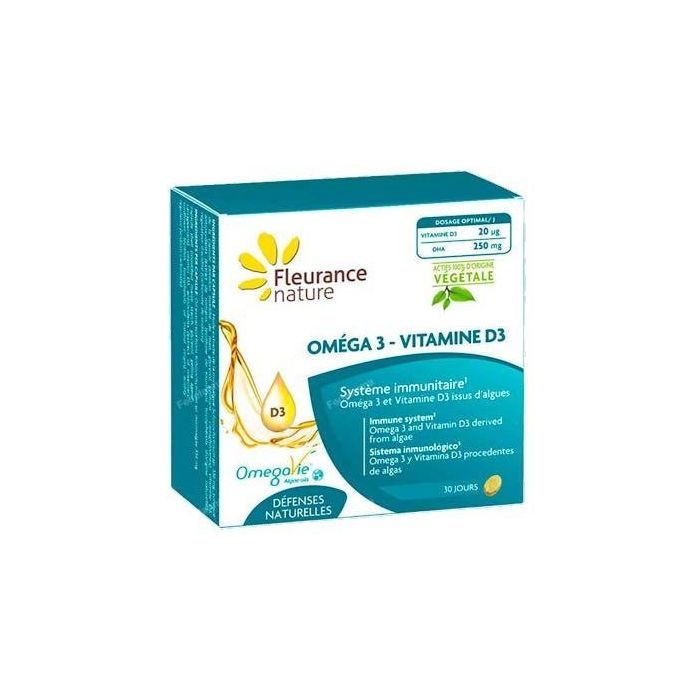 FLEURANCE NATURE Omega 3-Vitamina D3 30 Capsulas / 30 Dias Vegano Origen Vegetal Sistema Inmunitario Huesos Muscular Cerebro Vision