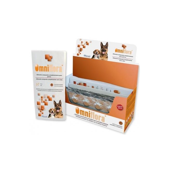 - COMPOSICIÓN POR COMP: Enterococcus faecium NCIMB 10415 4b1707, Bacillus subtilis C-3102 4b1820, Levadura de cerveza (Saccharomyces cerevisiae), Fructooligosacáridos (FOS), Inulina, Caolín, Pectina. POSOLOGÍA: PERROS: 1 comp/10 kg al día, duarnte 7-10 días. De forma preventiva, se recomienda administrar desde 2 días antes y hasta 2 días después de la exposición al factor desencadenante. El periodo de uso se puede extender de acuerdo con la gravedad del caso y la evaluación del veterinario. INDICACIONES: Indicado en los casos en que sea necesario mantener y/o restablecer el equilibrio de la microbiota intestinal, tales como: • Enfermedades gastrointestinales • Trastornos gastrointestinales • Prevención de la diarrea