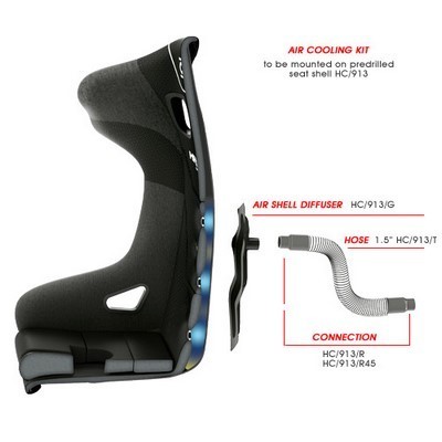 Adaptador de goma OMP para el kit de enfriamiento HC/913, diseñado para facilitar el montaje del sistema de ventilación en asientos compatibles.