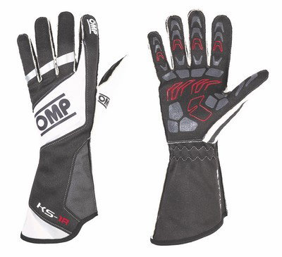 Omp OMPKB0-2740-A01-071-XXS Guantes Karting Ks-1R Profesional Negro-Blanco-Plata Talla XXS | Palma Goma Agarre Superior, Ajuste Velcro