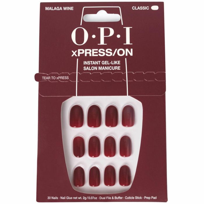 OPI xPRESS/ON Uñas Artificiales Adhesivas Press On Tonos Icónicos #Malaga Wine 30 Uds. Reutilizables y Veganas