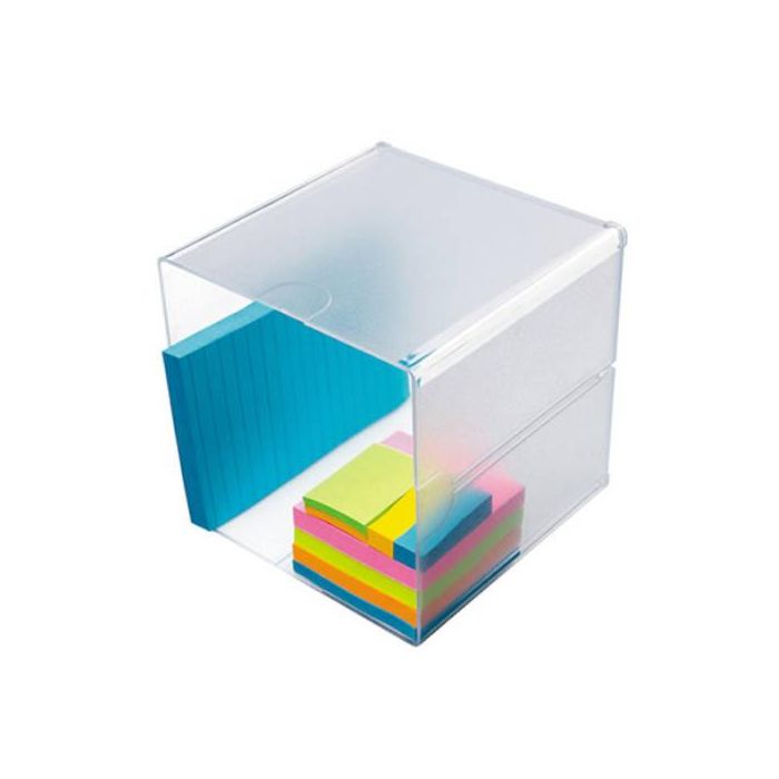 - El cubo cristalino ofrece una excelente visibilidad del contenido