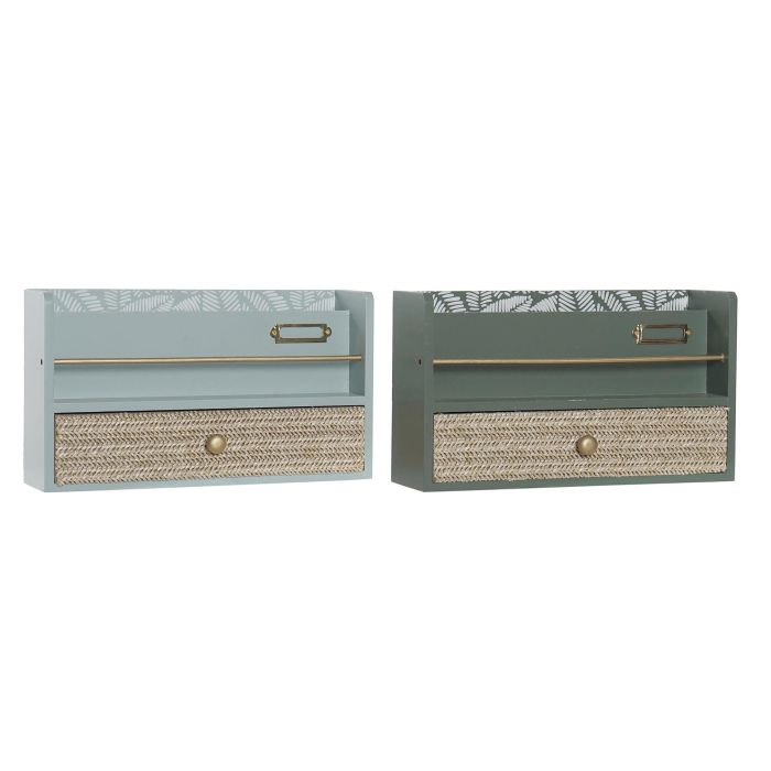 DKD Home Decor Organizador Tropical Home Office Verde Menta Verde Oscuro 9 x 17 x 30 cm (2 Unidades)