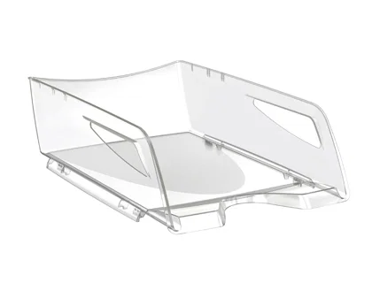 Fabricada en poliestireno. Bandeja muy amplia para los listados y documentos de gran tamaño. Elegante, práctica y muy robusta, sus dos asas le permiten mover la bandeja con mucha facilidad. Apilable. Para documentos DIN A4 y hasta 24 x 32 cm. Medidas: 270 x 115 x 386 mm.