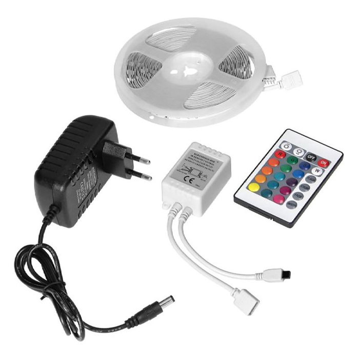 ORNO Tira LED LD-8/5M/RGB/SET, 12V 5050 7W/m, IP20, con Controlador y Fuente de Alimentación