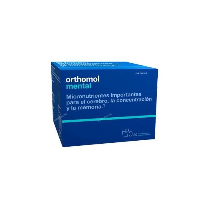 Indicaciones: Complemento alimenticio con micronutrientes importantes para el cerebro, la concentración y la memoria: El Ácido pantoténico contribuye al rendimiento intelectual normal. Los Ácidos grasos Omega 3 (DHA) ayudan a mantener el funcionamiento normal del cerebro. El efecto positivo se establece con una ingesta diaria de 250 mg de DHA. El zinc contribuye a una función cognitiva normal. Orthomol mental es un complemento alimenticio especialmente formulado para proporcionar micronutrientes para el cerebro, la concentración y la memoria. Este suplemento contiene una variedad de nutrientes esenciales, cada uno puede ser de utilidad para el apoyo de la función mental y cognitiva. Uno de los nutrientes clave en Orthomol mental es el ácido pantoténico, que contribuye al rendimiento intelectual normal. Además, este complemento alimenticio también contiene ácidos grasos Omega 3, específicamente DHA, que ayuda a mantener el funcionamiento normal del cerebro. Otro grupo importante de micronutrientes que se encuentran en Orthomol mental incluye las vitaminas B1, B2, B6, B12, la biotina, la niacina, la vitamina C y el magnesio. Estas vitaminas y minerales son conocidos por contribuir a una función normal del sistema nervioso, lo que incluye la regulación del estado de ánimo, la concentración y la memoria. Además, también contiene zinc, que ayuda a un normal desempeño cognitivo.