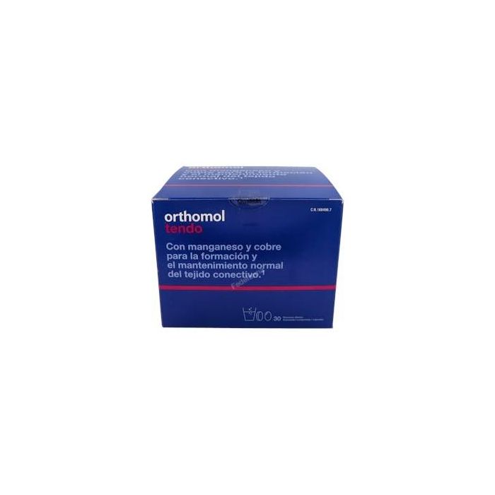 Indicaciones: Fórmula con los micronutrientes necesarios para el metabolismo y síntesis de colágeno: condroitín sulfato, glucosamina, ácido hialuronico y colageno hidrolizado y otros micronutrientes imprescindibles para la formación normal del tejido conectivo como la vitamina C, vitamina E y el manganeso. Además contiene ácidos grasos Omega 3 y enzimas (bromelaína y papaína). Orthomol tendo es un complemento alimenticio, que está diseñado para proporcionar los micronutrientes necesarios para ayudar a mantener la función normal del tejido conectivo, especialmente en los tendones debido a que contiene una variedad de nutrientes importantes que contribuyen al metabolismo y síntesis del colágeno, que es el principal componente del tejido conectivo. Entre los micronutrientes presentes en Orthomol tendo se encuentran el condroitín sulfato, la glucosamina, el ácido hialurónico y el colágeno hidrolizado, todos ellos esenciales para la formación y reparación del tejido conectivo. Este producto contiene nutrientes esenciales como la vitamina C, vitamina E y manganeso, que son importantes para mantener los tejidos conectivos en condiciones normales. Además de los nutrientes mencionados anteriormente, Orthomol tendo también incluye ácidos grasos Omega 3, que son conocidos por sus propiedades antiinflamatorias. Aporta, asimismo, enzimas como la bromelaína y la papaína, que pueden ayudar a la inflamación y la digestión. Este complemento alimenticio se presenta en cajas de 15 y 30 sobres de granulado, cada uno de los cuales contiene cápsulas de ácidos grasos Omega 3 y un comprimido de enzimas.