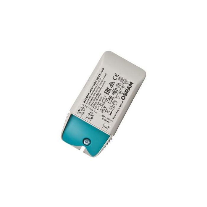 Transformadores electrónicos para lámparas halógenas de bajo voltaje. Características del producto: Frecuencia de línea: 50…60 Hz. Supresión de RI: según EN 55015 (A1: 2007)/CISPR 15, EN 55022. Armónicos: de conformidad con EN 61000-3-2. Inmunidad acorde EN 61547. Seguridad: según EN 61347. Protección contra cortocircuitos, protección contra sobrecarga y protección contra sobretemperatura: electrónicamente reversible. Aislamiento eléctrico entre el lado primario y el lado secundario. No se permite la conmutación entre transformador electrónico y la lámpara. Eficiencia energética: = 91 % (conforme a la normativa ErP 2012/1194/CE). Regulable en la fase inicial (sin HTN) y en el corte de fase. Beneficios del producto: Muy baja pérdida de potencia gracias a su alta eficacia. Protección apta para diferentes tipos de cable (HTM). Apto para instalaciones muy críticas respecto al espacio, gracias al compacto diseño funcional. Transformador extremadamente compacto para condiciones de instalación muy críticas respecto al espacio (HTN). Funcionamiento protector durante todo el rango de carga parcial para una larga vida útil de las lámparas. Áreas de aplicación: Iluminación de efecto y de acento. Salones. Iluminación de objetos. Salas de conferencias. Restaurantes. Luminarias para muebles montadas en el techo y empotradas. Iluminación de comercios. Salones de actos.