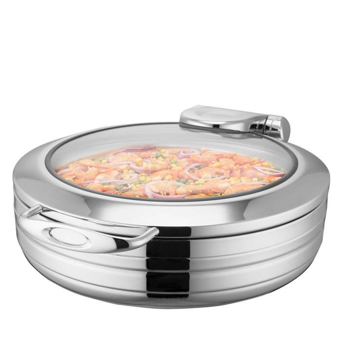 OYV Chaffing Dish o Fuente de Buffet Redonda de Acero Inoxidable, 36 cm de Diámetro (Capacidad 6.8 l, Alto 18 cm, para Mantener Comidas Calientes)