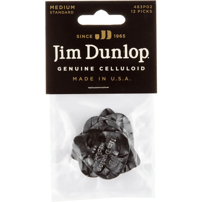 Dunlop Pack 12 Púas Genuine Celluloid Negro - Medium