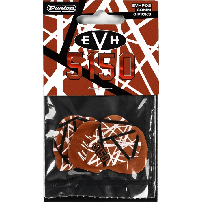 Pack de 24 púas Max-Grip® de 0,60 mm como las que usó Eddie Van Halen y con serigrafía basada en su guitarra "Frankenstein", la guitarra más reconocida del mundo.