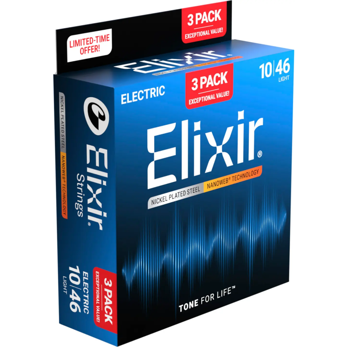 Elixir Pack 3 Juegos Cuerdas Eléctrica Nanoweb Nickel P. Steel Light 10-46