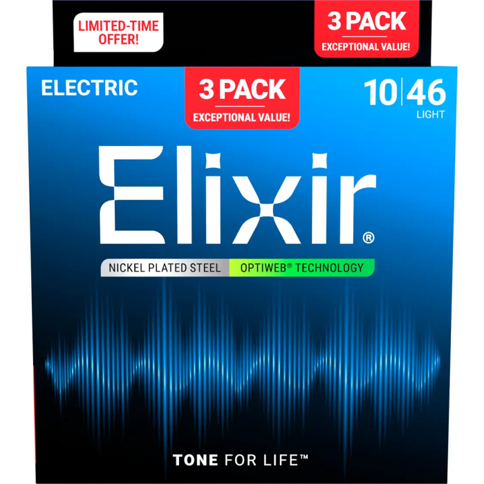 Elixir Cuerdas Guitarra Eléctrica Nickel Plated Steel con Recubrimiento OPTIWEB Calibre 10-46 - Pack 3