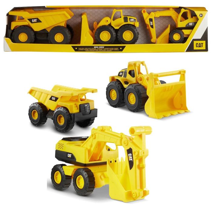 Funrise Pack 3 Vehículos Caterpillar 82284 18cm Volquete Excavadora Pala Cargadora Plástico Rueda Libre Partes Articuladas +2 Años