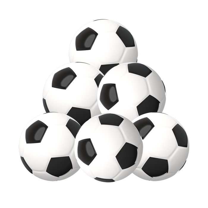 Pack de 6 bolas de 34 mm. Medida estándar para todos los futbolines.