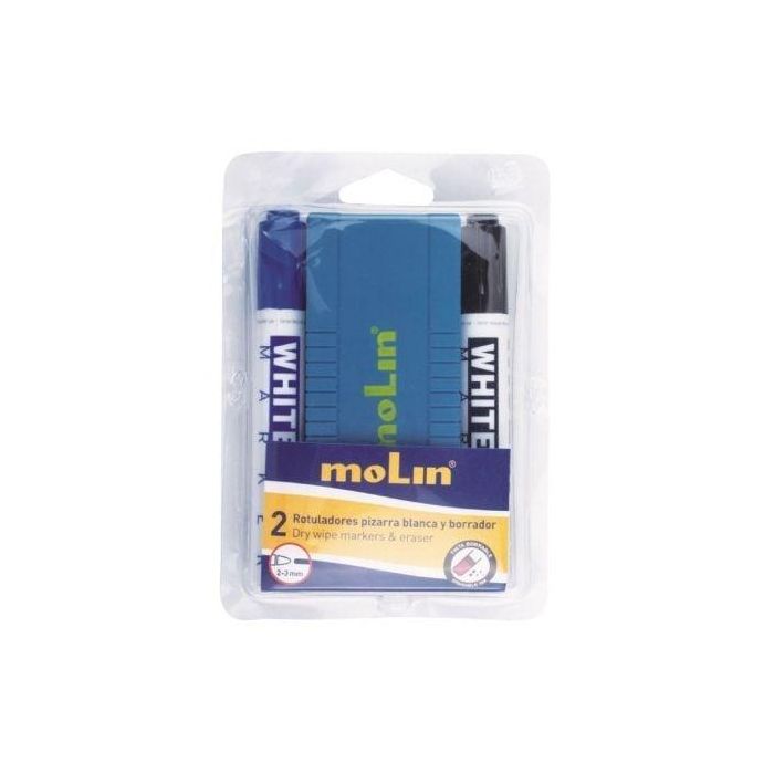Pack Borrador de Pizarra + 2 Rotuladores Molin RWB230-02B/ 2mm