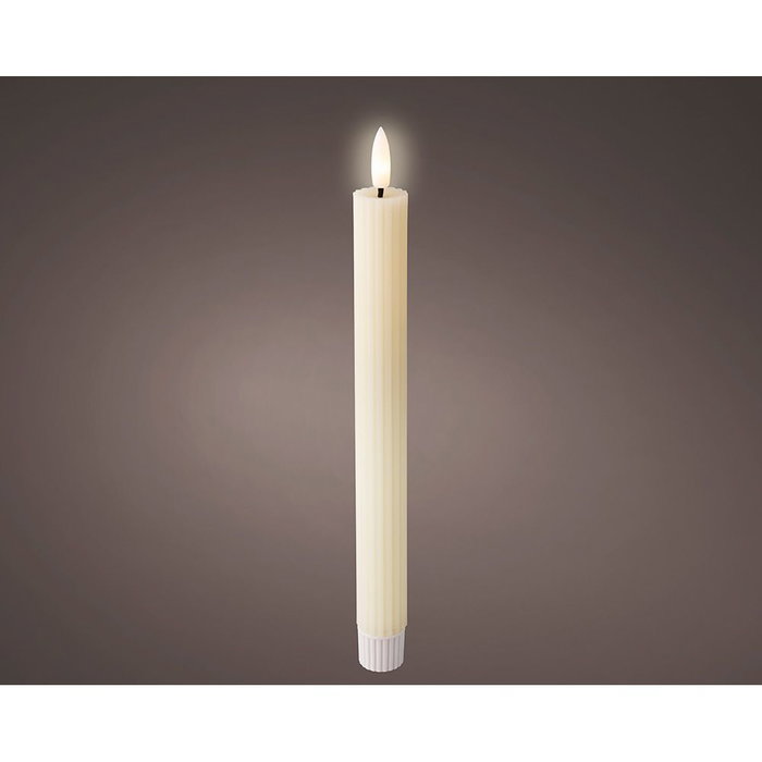 Vela de cera led con efecto llama, color beige, superficie con relieve, medidas: ø2,2 x 24,5 cm. color led: luz cálida, funciona con pilas 2 x aaa (no incluidas), uso: interior, con temporizador de 6 h y 18 h de apagado. pack 2 uds