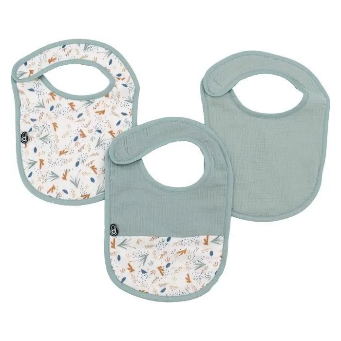 Domiva DOM3700948338568 Pack de 3 Baberos Gasa de Algodón 0-6 Meses Celadón