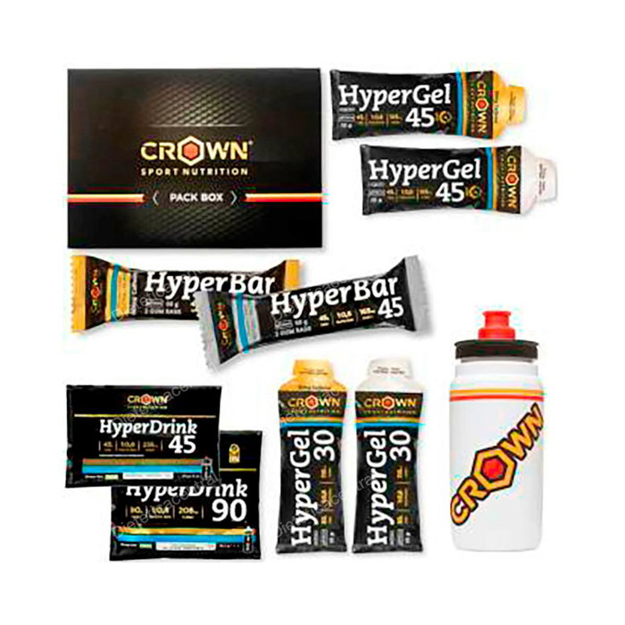 Indicaciones: Pack ideal para probar todos los productos de la línea Hyper(1:0,8) y poder llegar a altas cantidades de carbohidratos por hora con facilidad. Contiene 9 unidades. Compuesto por: 1 x HyperDrink 45 1 x HyperDrink 90 1 x HyperGel 30 Hydro 1 x HyperGel 30 +Caffeine Hydro 1 x HyperGel 45 1 x HyperGel 45 +Caffeine 1 x HyperBar 45 1 x HyperBar 45 +Caffeine 1 x Bidón PRO Fly 750 ml