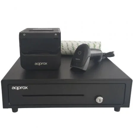Approx appPOSPACK4180-2D Pack TPV: Cajón Portamonedas, Impresora Tickets 80mm, Lector Códigos 2D, Rollos Térmicos
