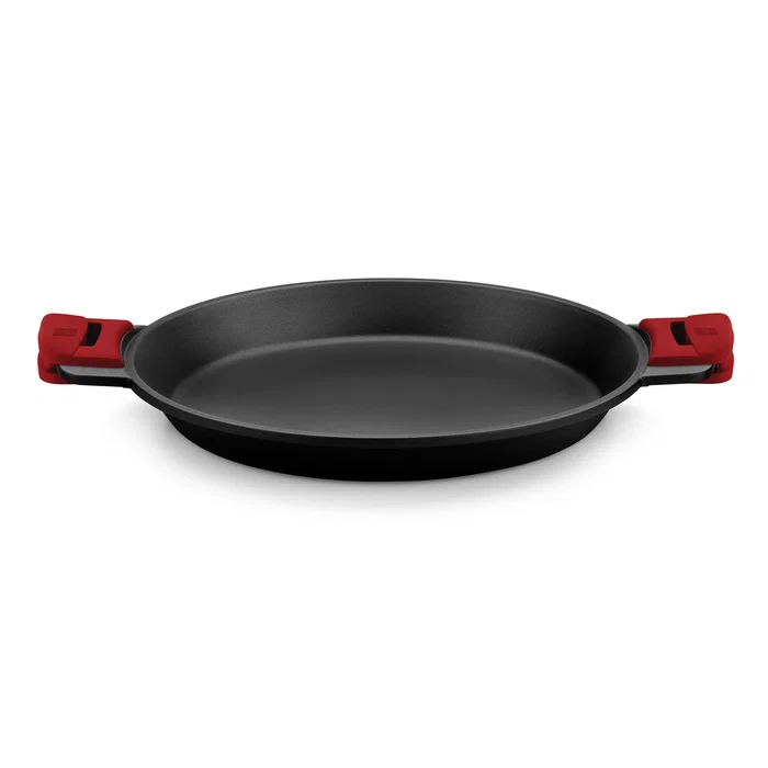 La paellera Premiere une la calidad del aluminio fundido antiadherente con el diseño moderno. Es una paellera robusta con un revestimiento antiadherente Teflón innovations 100% libre de PFOA.