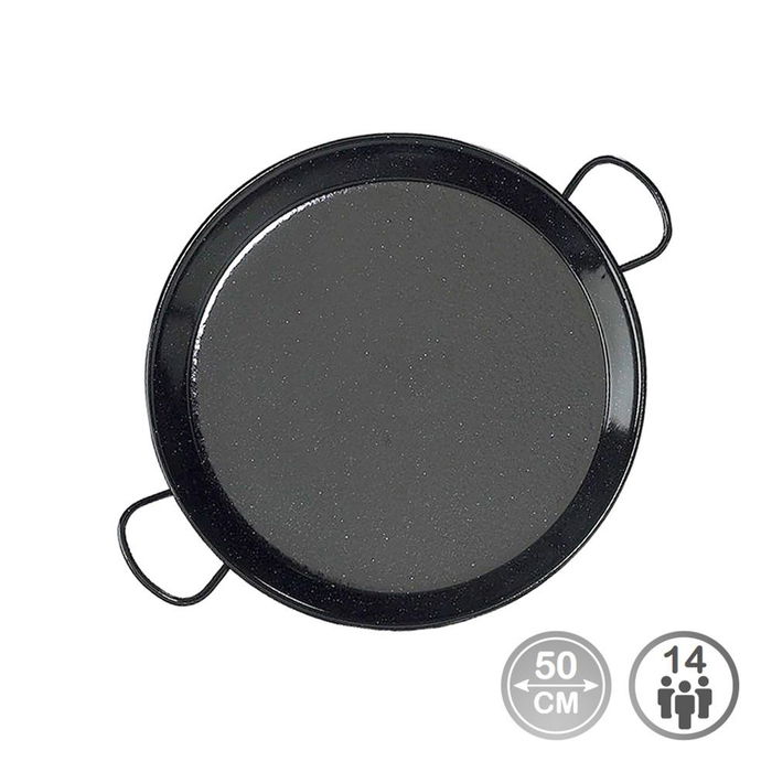 Paellera tradicional de acero esmaltado ø50cm (14 personas) apta para cocinas de gas. fabricacion nacional. atención: requiere mantenimiento. debe ser almacenado con una cubierta de aceite. vaello
