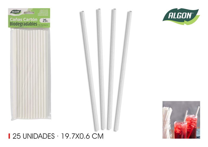 Set-25 Pajitas Carton Blancas 197X6 Algon