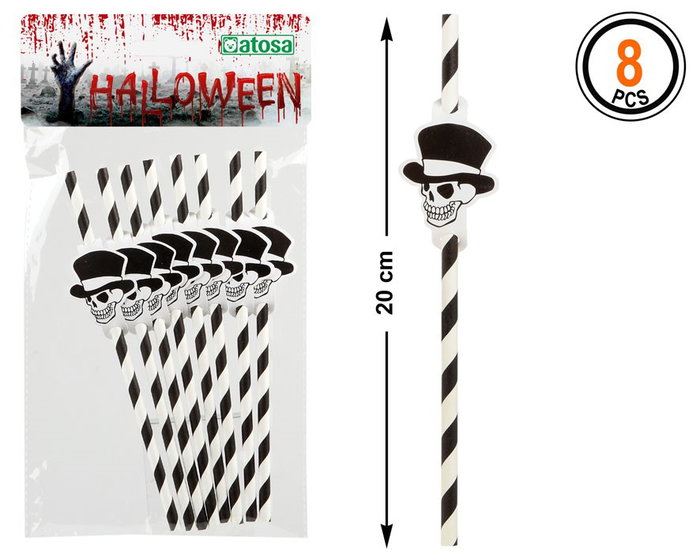 Atosa Set 8 Pajitas Calavera Halloween Blanco y Negro